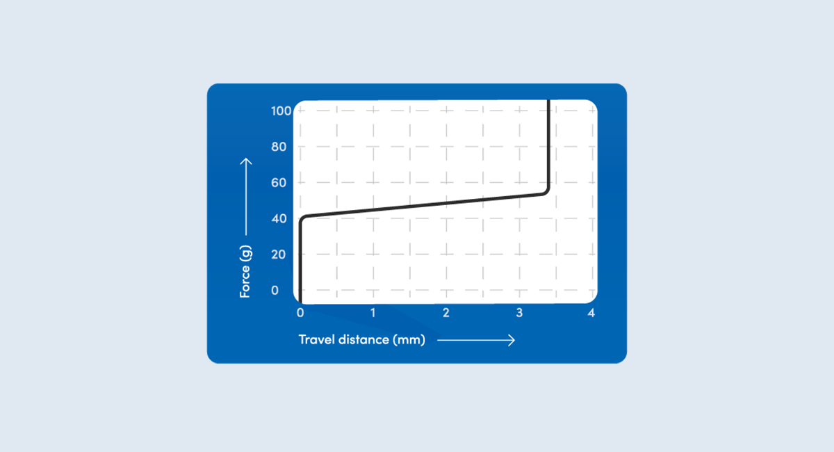 ‘Clacky’ sound profile - When fully pressed down, the switch stem hits a closed bottom, accentuating high-pitched tones and resulting in a distinctive ‘clacky’ sound profile.